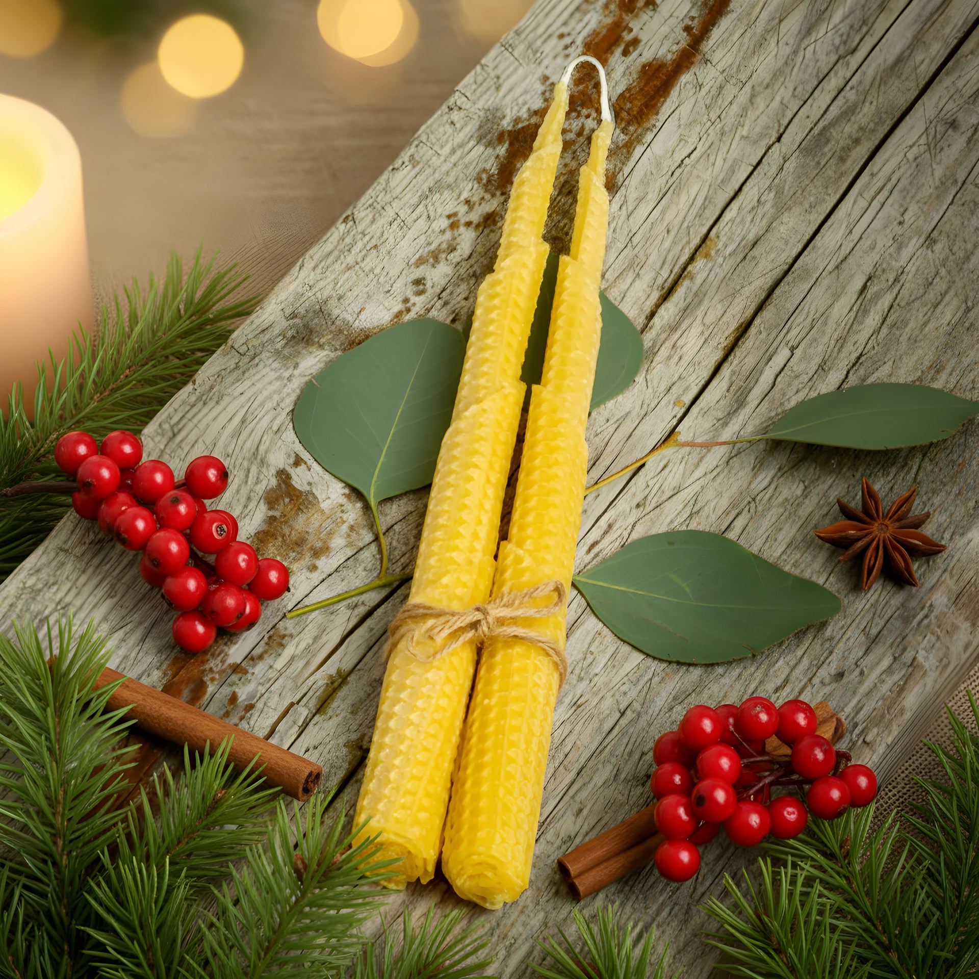 Fina handgjorda ljus av 100% rent bivax från Björkeberga. Ljuset ger ifrån sig en naturligt söt och frisk honungsdoft. Bivaxet som används är en helt naturlig och klimatsmart produkt som inte har någon påverkan på naturen.