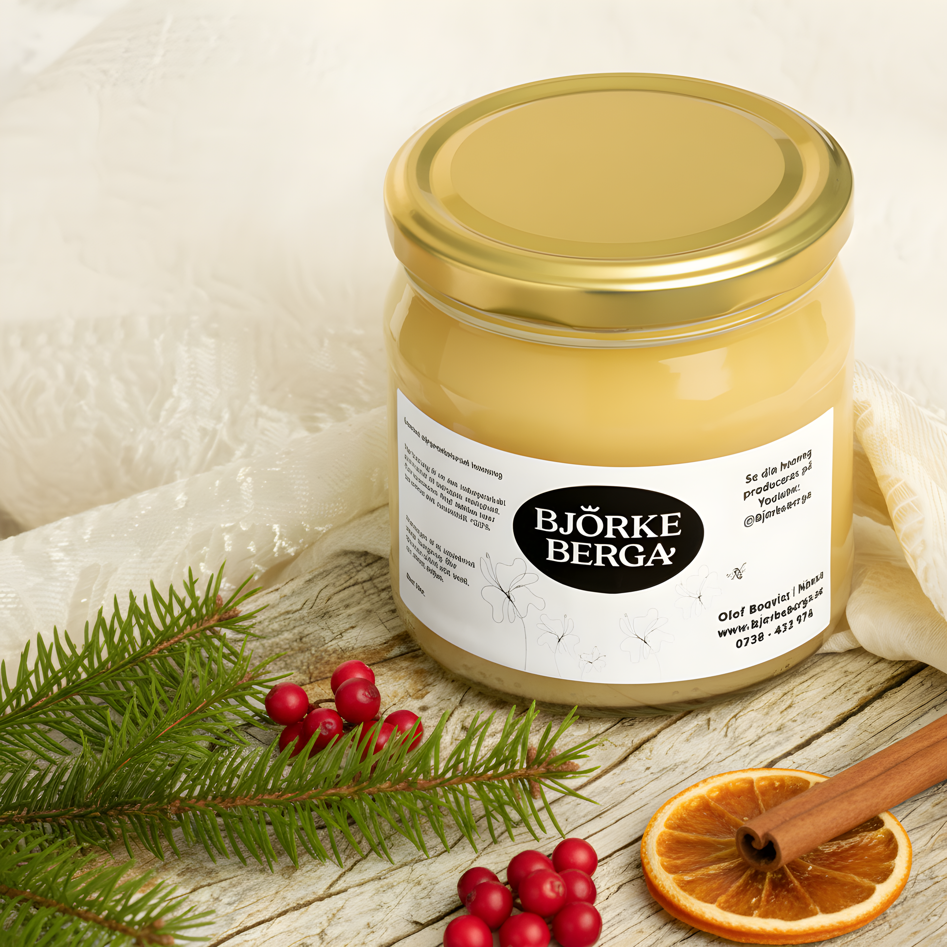 Honung med slät textur. Sockerkristallerna har finfördelats genom att honungen ympats innan den tappas på burk. Ymp innebär att vi rör en mindre mängd honung slät, denna ymp blandas sedan i nyslungad honung som då intar samma släta textur.